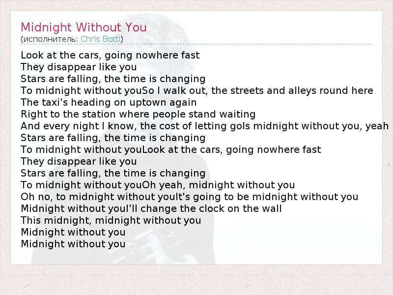 To midnight without youOh yeah, midnight without you