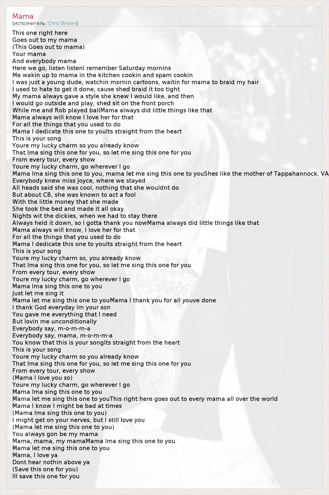 Always held it down, so I gotta thank you nowMama always did little things like that
