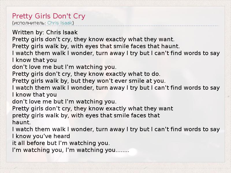 А как ты думаешь, о чем песня "Pretty Girls Don't Cry" ?