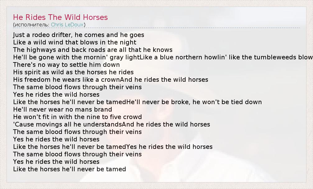 А как ты думаешь, о чем песня "He Rides The Wild Horses" ?