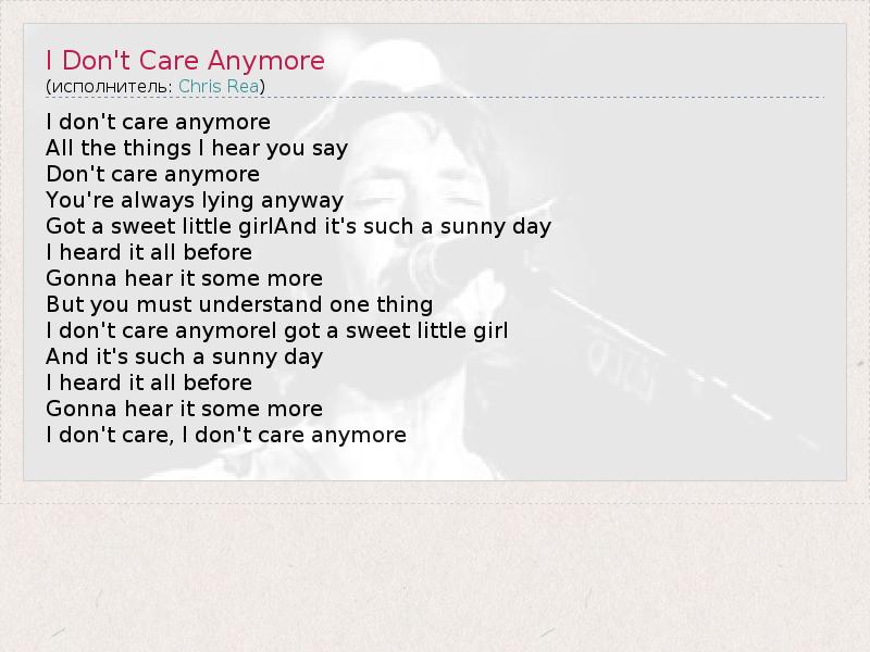 А как ты думаешь, о чем песня "I Don't Care Anymore" ?