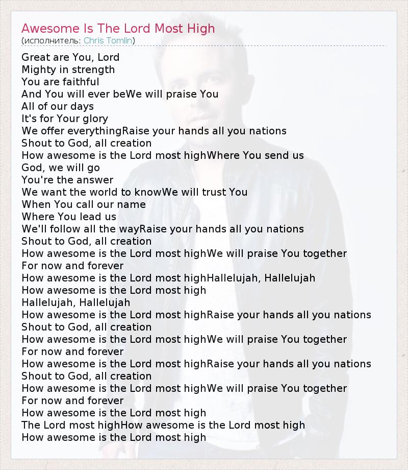 ГлавнаяИсполнителиChris TomlinAwesome Is The Lord Most High