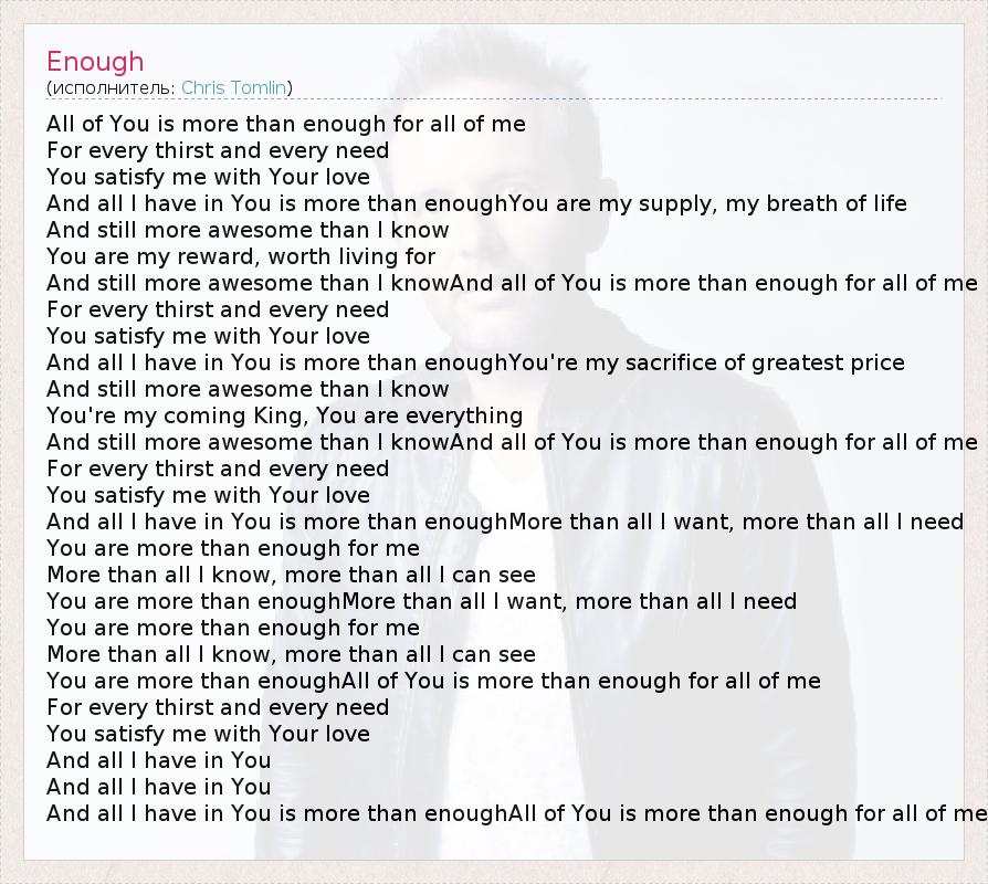 And all I have in You is more than enoughAll of You is more than enough for all of me