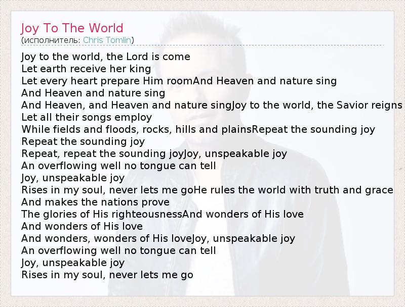 А как ты думаешь, о чем песня "Joy To The World" ?