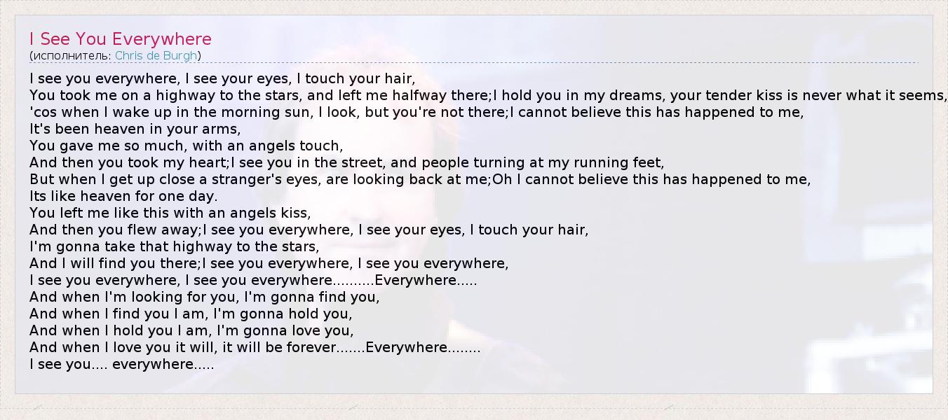А как ты думаешь, о чем песня "I See You Everywhere" ?