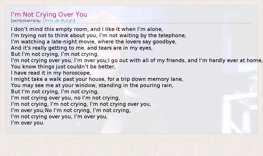 I'm over you;No I'm not crying, I'm not crying,
