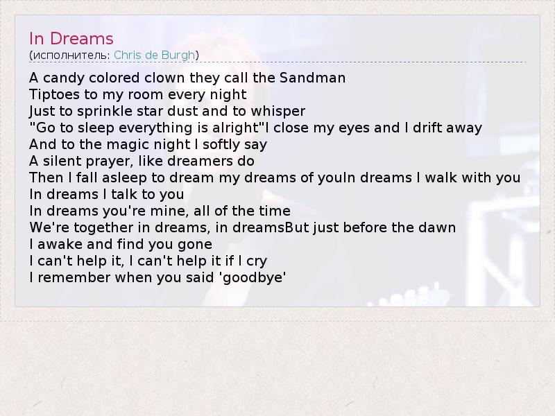 А как ты думаешь, о чем песня "In Dreams" ?