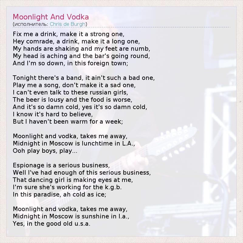 А как ты думаешь, о чем песня "Moonlight And Vodka" ?