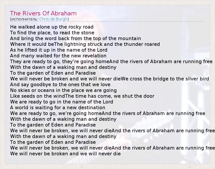 А как ты думаешь, о чем песня "The Rivers Of Abraham" ?