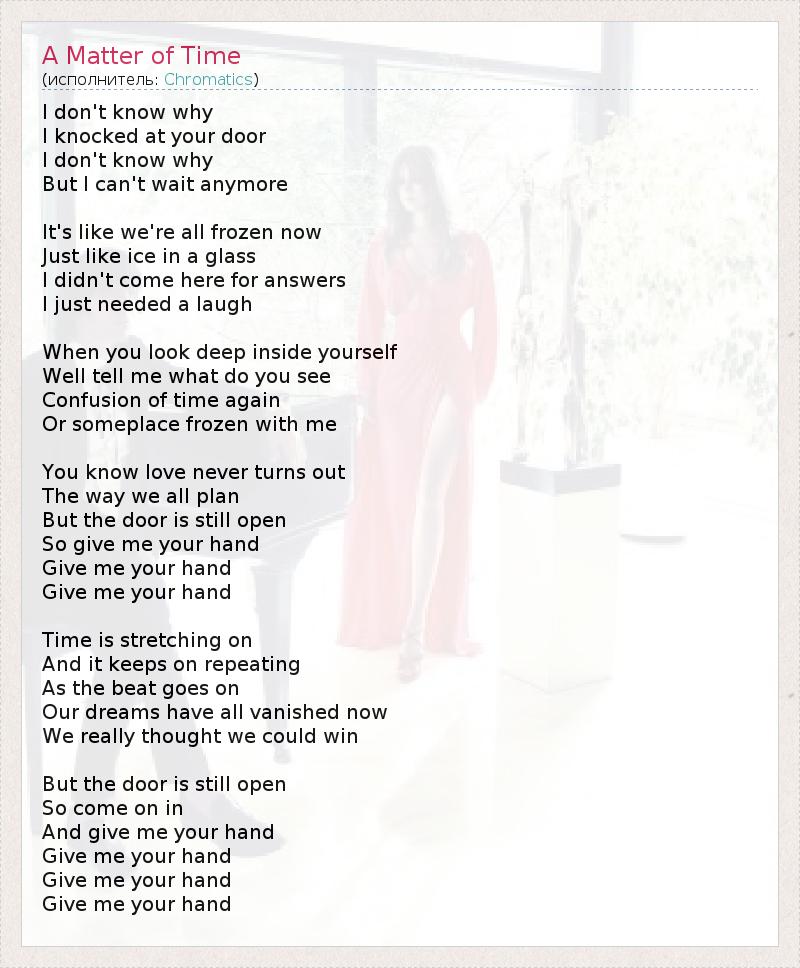 А как ты думаешь, о чем песня "A Matter of Time" ?