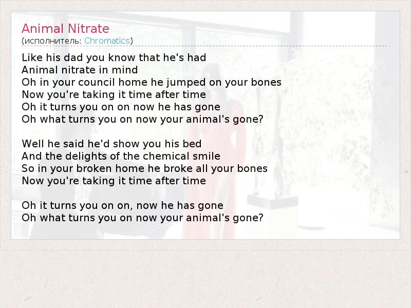 А как ты думаешь, о чем песня "Animal Nitrate" ?