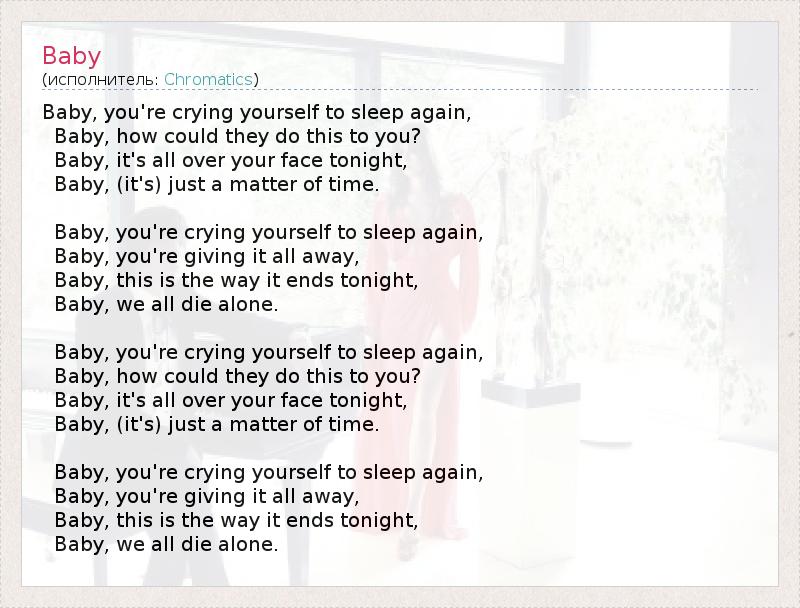 Baby, you're crying yourself to sleep again,