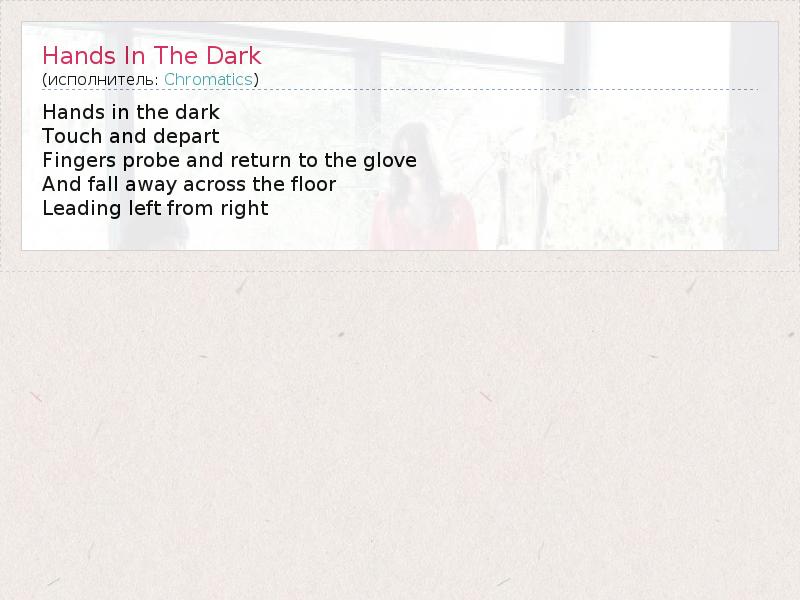 А как ты думаешь, о чем песня "Hands In The Dark" ?