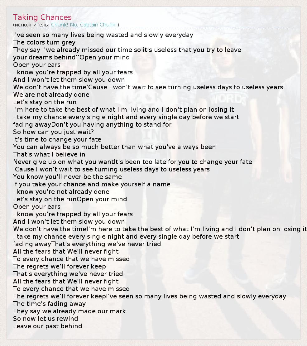 А как ты думаешь, о чем песня "Taking Chances" ?