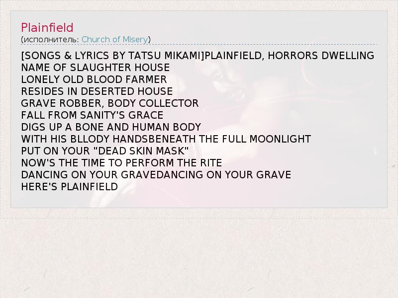 [SONGS & LYRICS BY TATSU MIKAMI]PLAINFIELD, HORRORS DWELLING