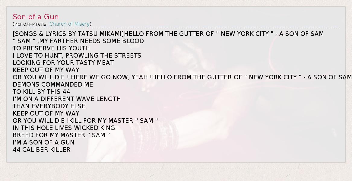 [SONGS & LYRICS BY TATSU MIKAMI]HELLO FROM THE GUTTER OF " NEW YORK CITY " - A SON OF SAM