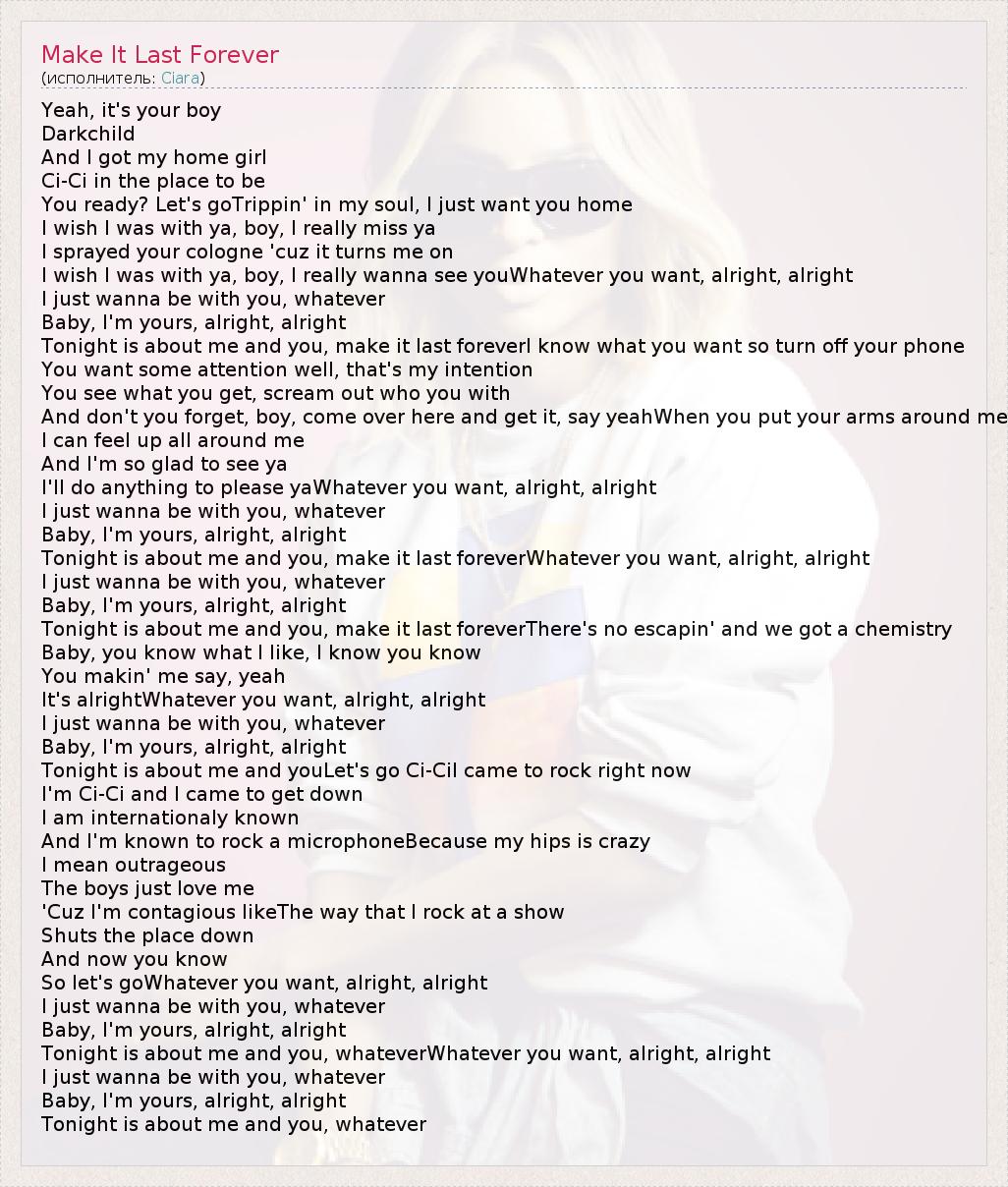 А как ты думаешь, о чем песня "Make It Last Forever" ?