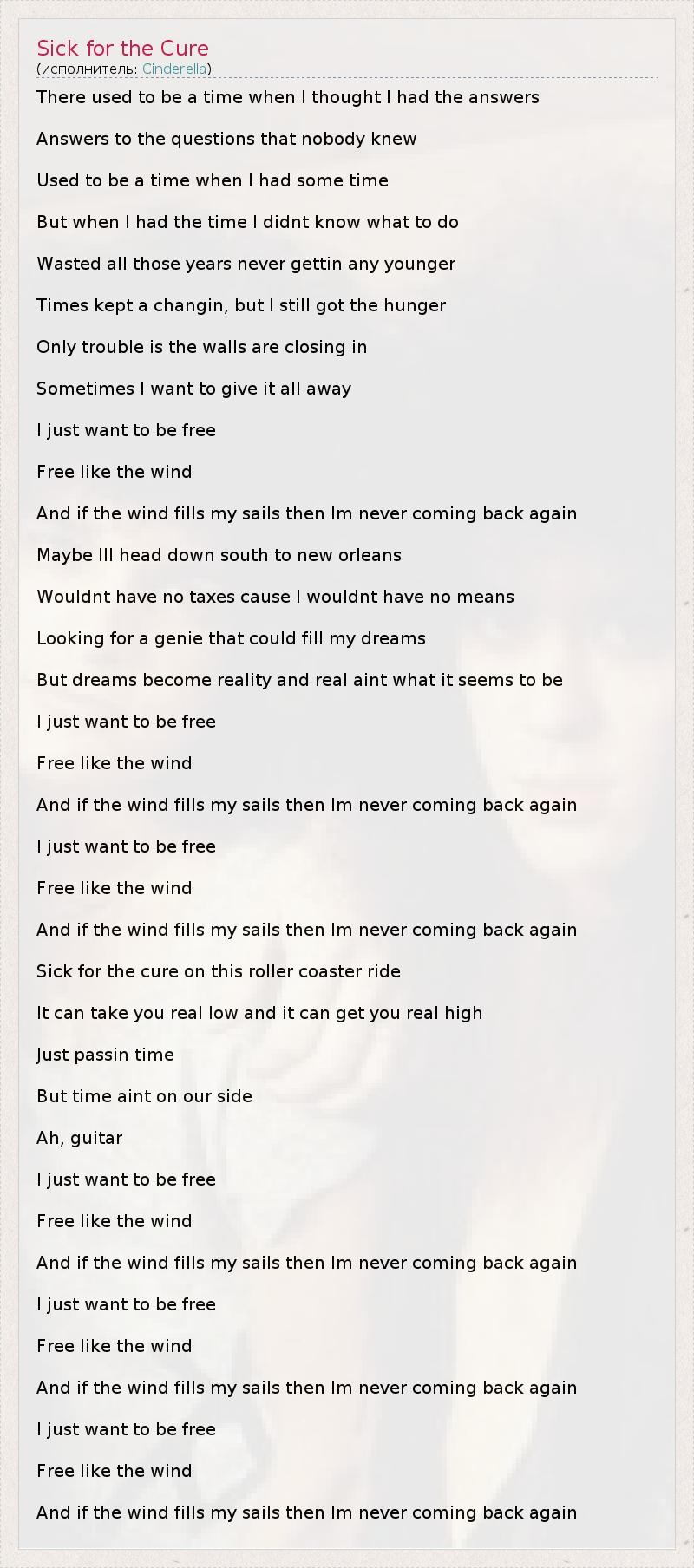 А как ты думаешь, о чем песня "Sick for the Cure" ?