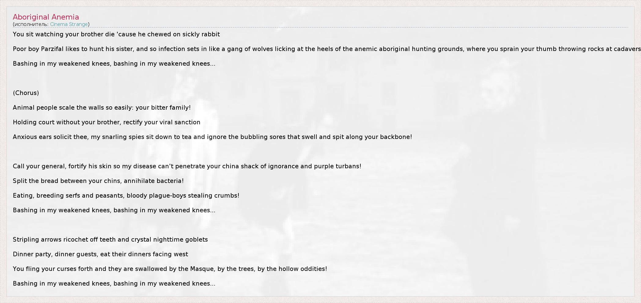 А как ты думаешь, о чем песня "Aboriginal Anemia" ?