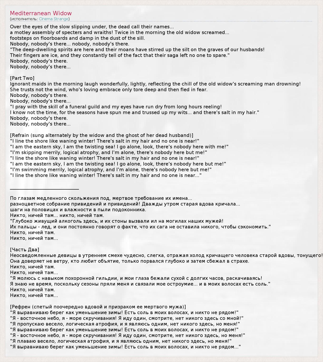 А как ты думаешь, о чем песня "Mediterranean Widow" ?