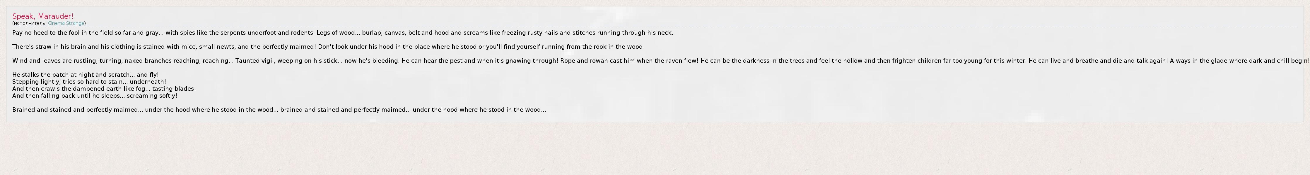 А как ты думаешь, о чем песня "Speak, Marauder!" ?