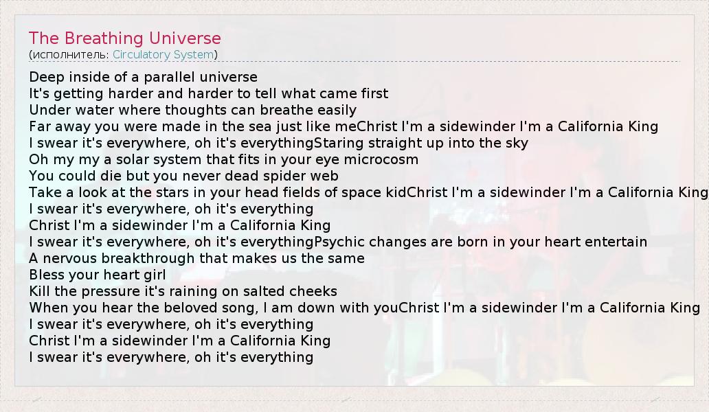А как ты думаешь, о чем песня "The Breathing Universe" ?