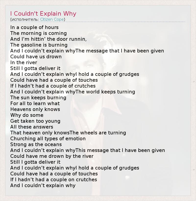 А как ты думаешь, о чем песня "I Couldn't Explain Why" ?