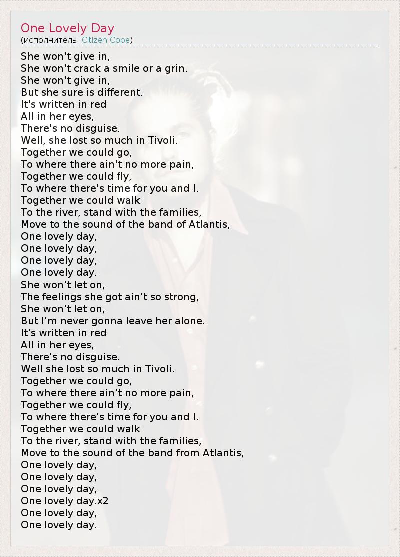 А как ты думаешь, о чем песня "One Lovely Day" ?