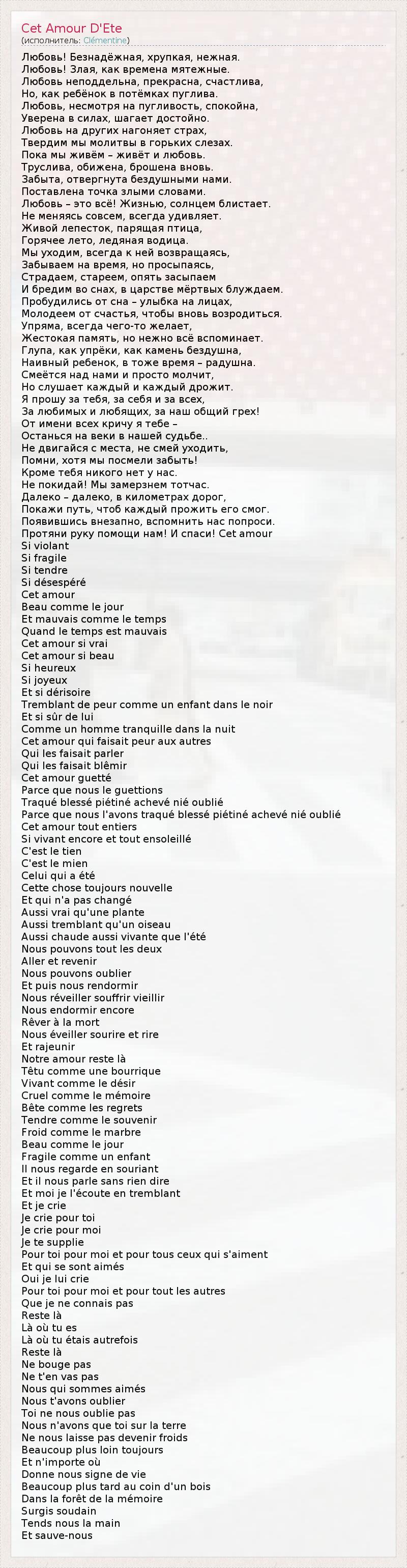 А как ты думаешь, о чем песня "Cet Amour D'Ete" ?