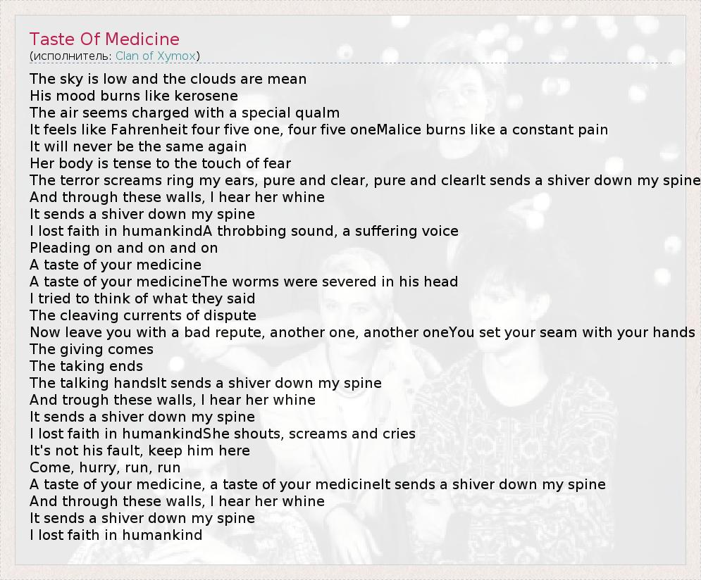 А как ты думаешь, о чем песня "Taste Of Medicine" ?
