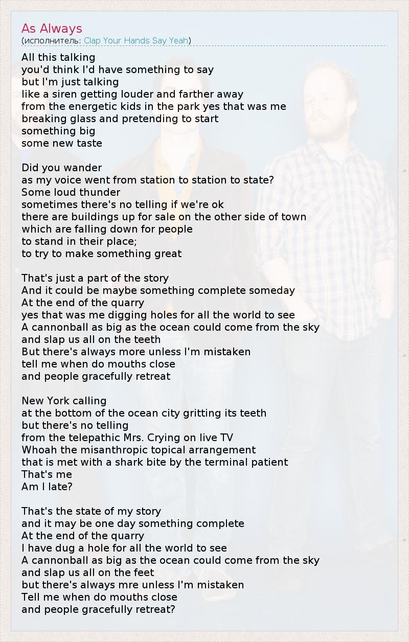 А как ты думаешь, о чем песня "As Always" ?