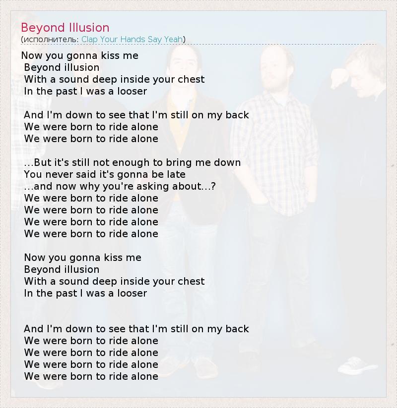 А как ты думаешь, о чем песня "Beyond Illusion" ?