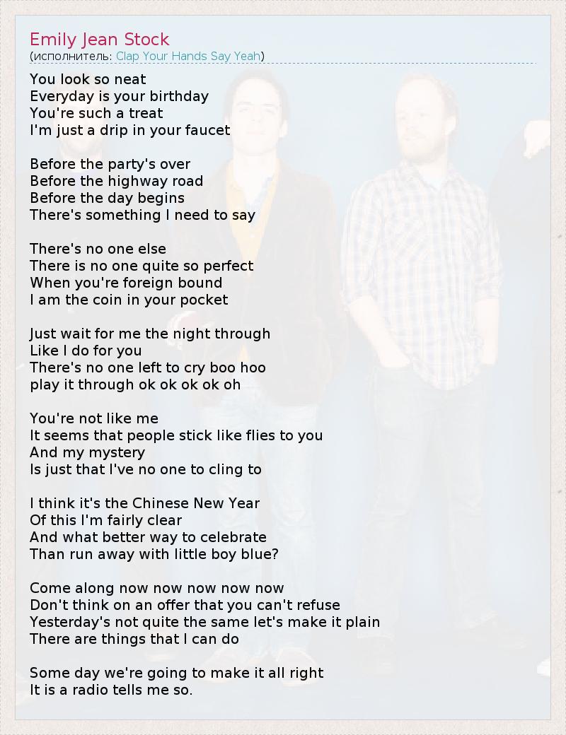 А как ты думаешь, о чем песня "Emily Jean Stock" ?