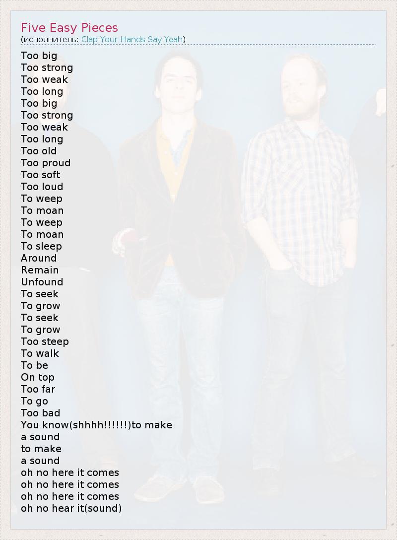 А как ты думаешь, о чем песня "Five Easy Pieces" ?