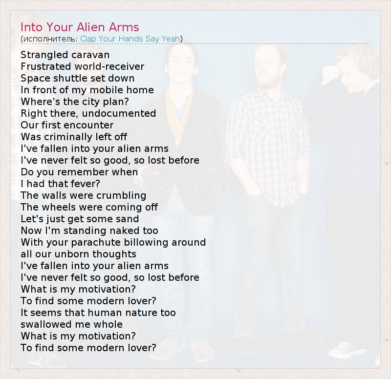 А как ты думаешь, о чем песня "Into Your Alien Arms" ?