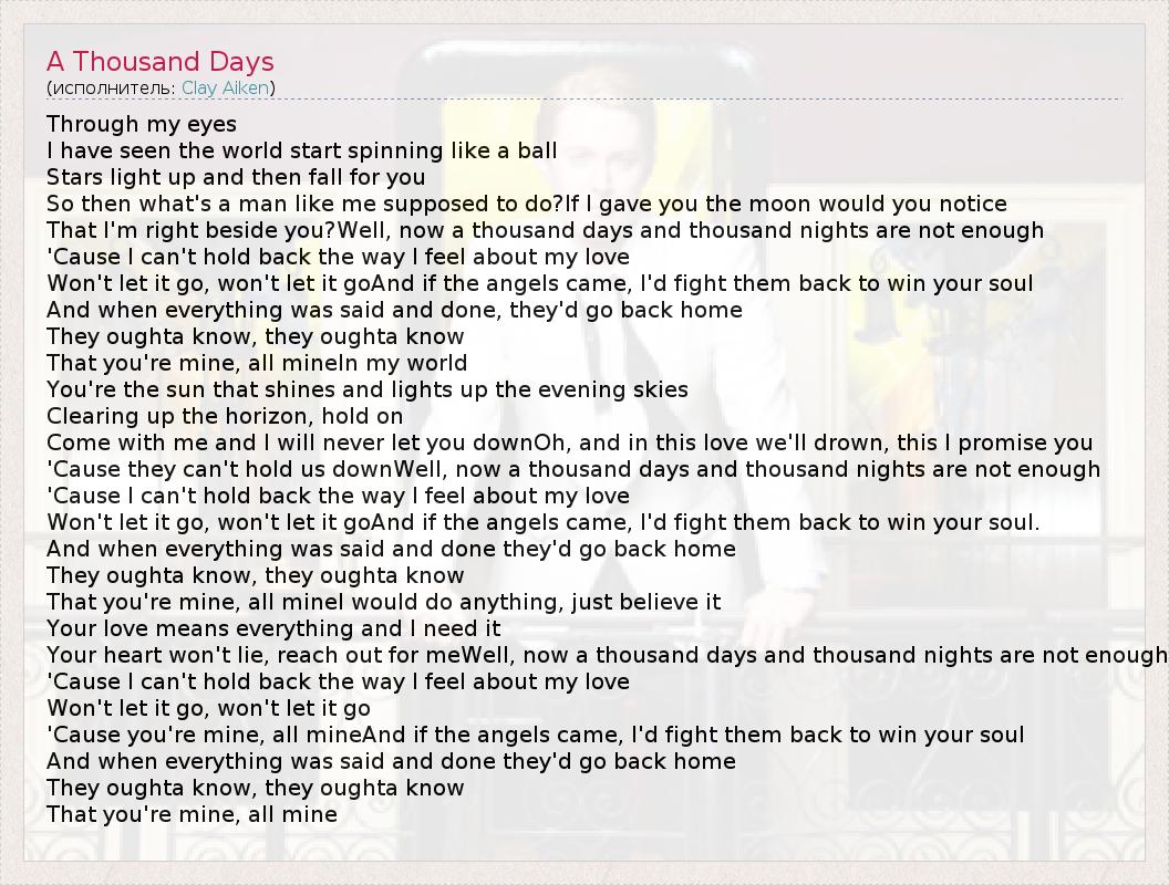 А как ты думаешь, о чем песня "A Thousand Days" ?