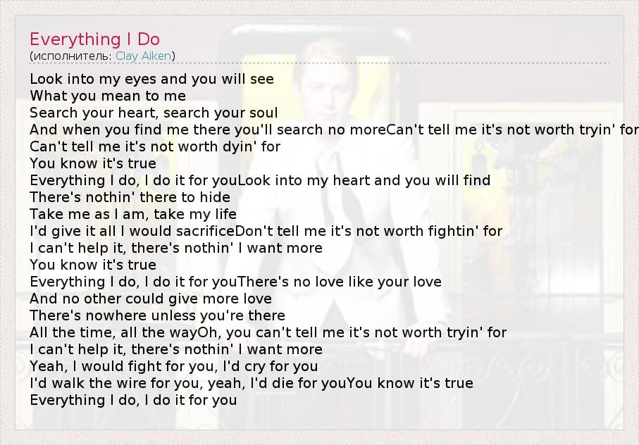 Everything I do, I do it for youLook into my heart and you will find