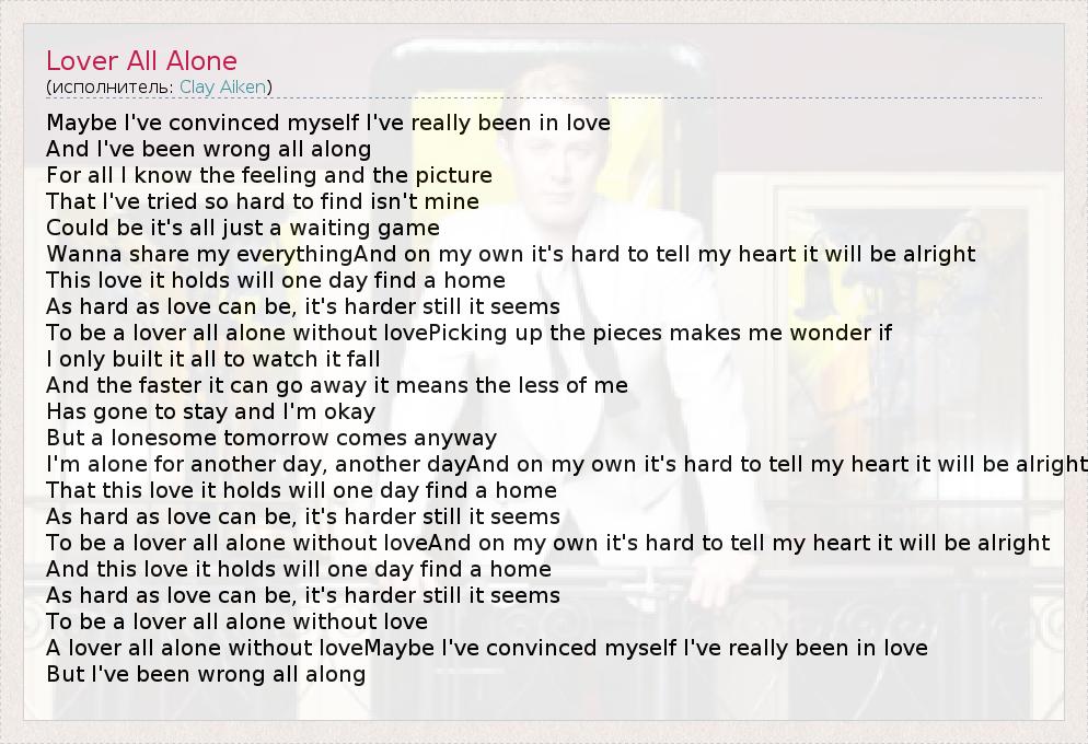 To be a lover all alone without loveAnd on my own it's hard to tell my heart it will be alright