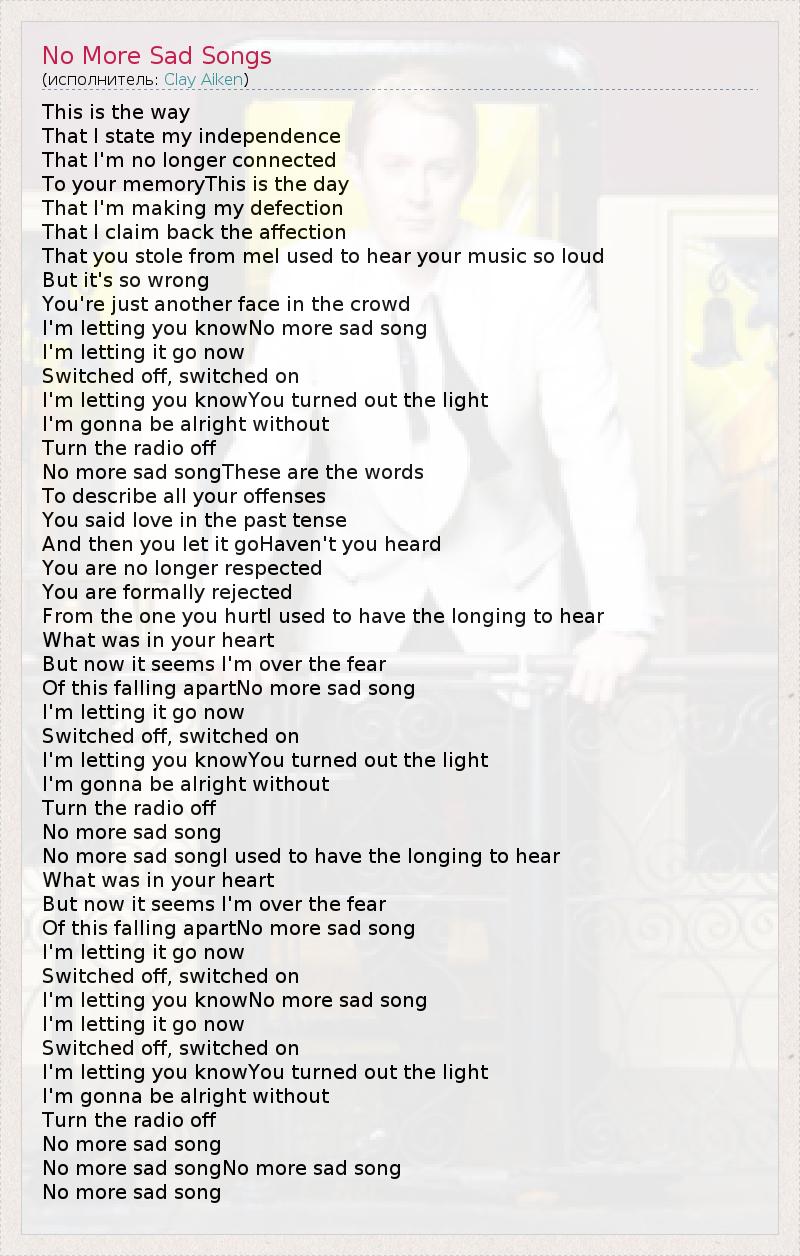 А как ты думаешь, о чем песня "No More Sad Songs" ?