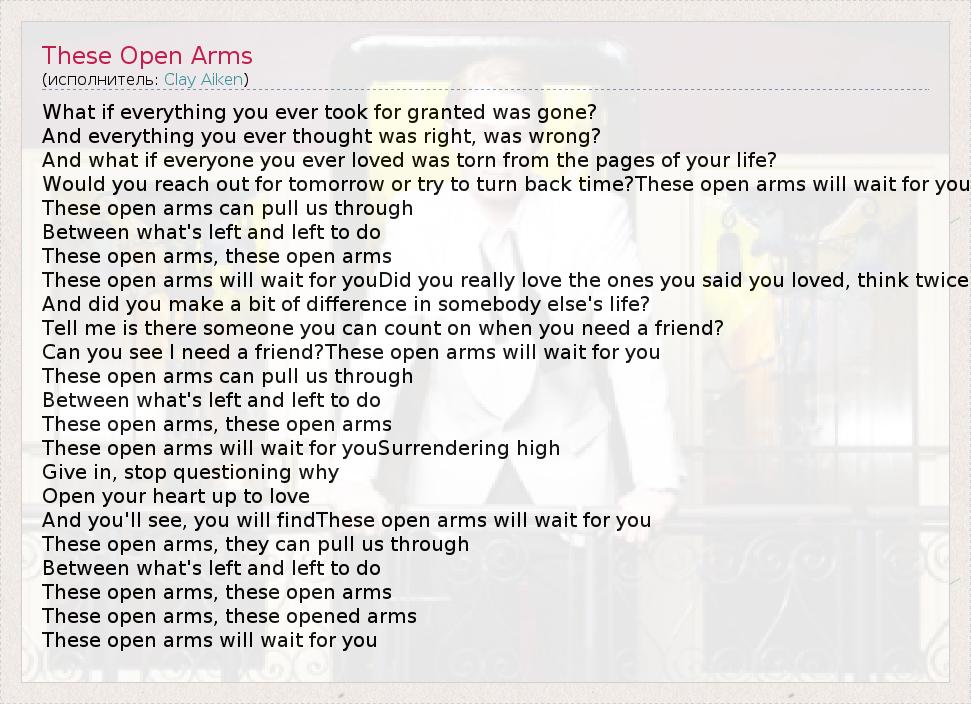 А как ты думаешь, о чем песня "These Open Arms" ?