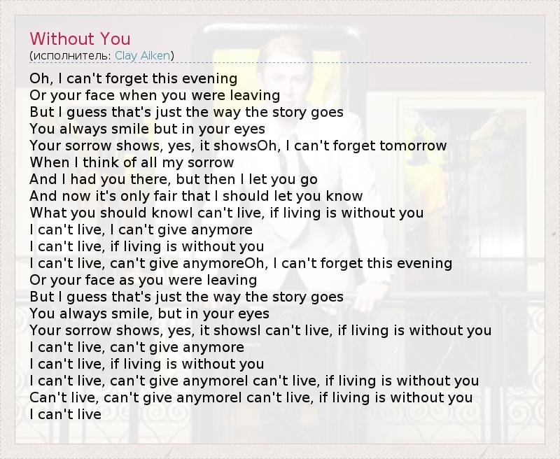 Your sorrow shows, yes, it showsI can't live, if living is without you