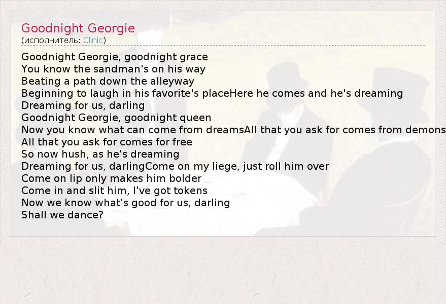 А как ты думаешь, о чем песня "Goodnight Georgie" ?