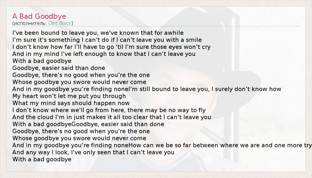 А как ты думаешь, о чем песня "A Bad Goodbye" ?