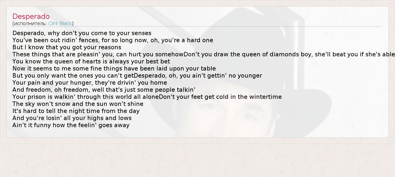 А как ты думаешь, о чем песня "Desperado" ?