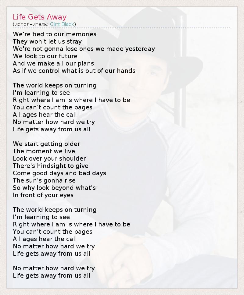 А как ты думаешь, о чем песня "Life Gets Away" ?