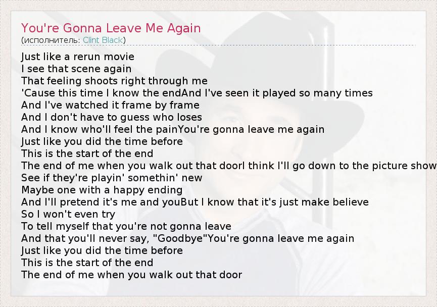 ГлавнаяИсполнителиClint BlackYou're Gonna Leave Me Again