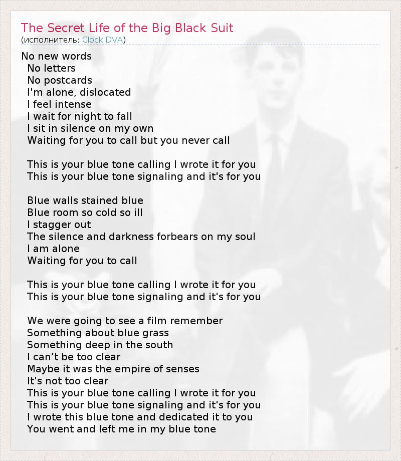 А как ты думаешь, о чем песня "The Secret Life of the Big Black Suit" ?