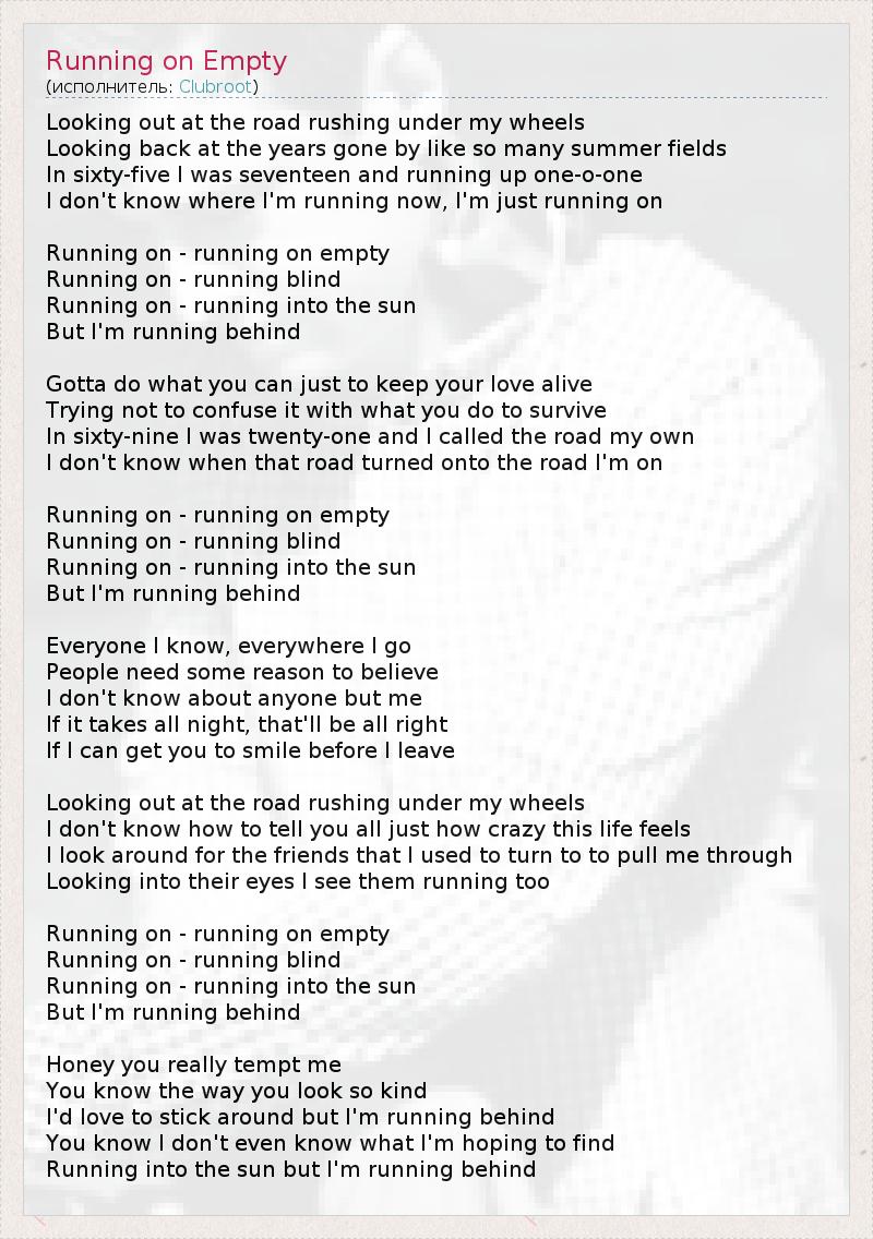 А как ты думаешь, о чем песня "Running on Empty" ?