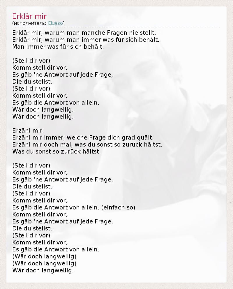 А как ты думаешь, о чем песня "Erklär mir" ?