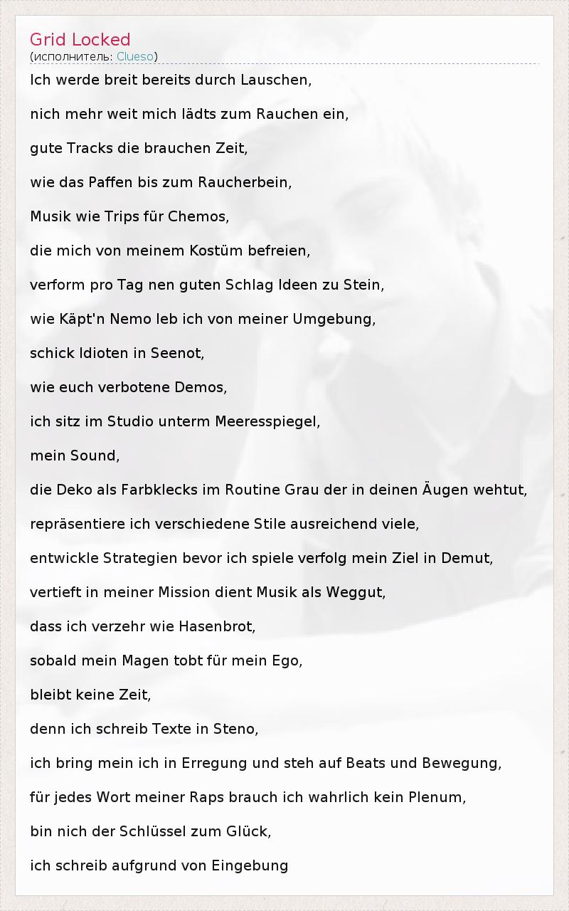 Это интересно:Clueso (произносится Клюзо, ударение на последний слог), в миру известен как Томас Хюбнер (Thomas Hübner) родился 9 апреля 1980 года в городе Эрфурт, Германия, немецкий певец (по большей части в стиле рэп), композитор и продюсер.Clueso (имя от инспектора Клюзо из Розовой пантеры) начал заниматься музыкой в 1995. В 1998 он познакомился со своим будущим менеджером... продолжение